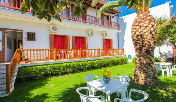 Hotel Kostis se nachází v centru města Skiathos, jen 3 minuty chůze od přístavu a hlavní ulice. Nabízí snack bar a klimatizované pokoje s bezplatným Wi-Fi a TV.