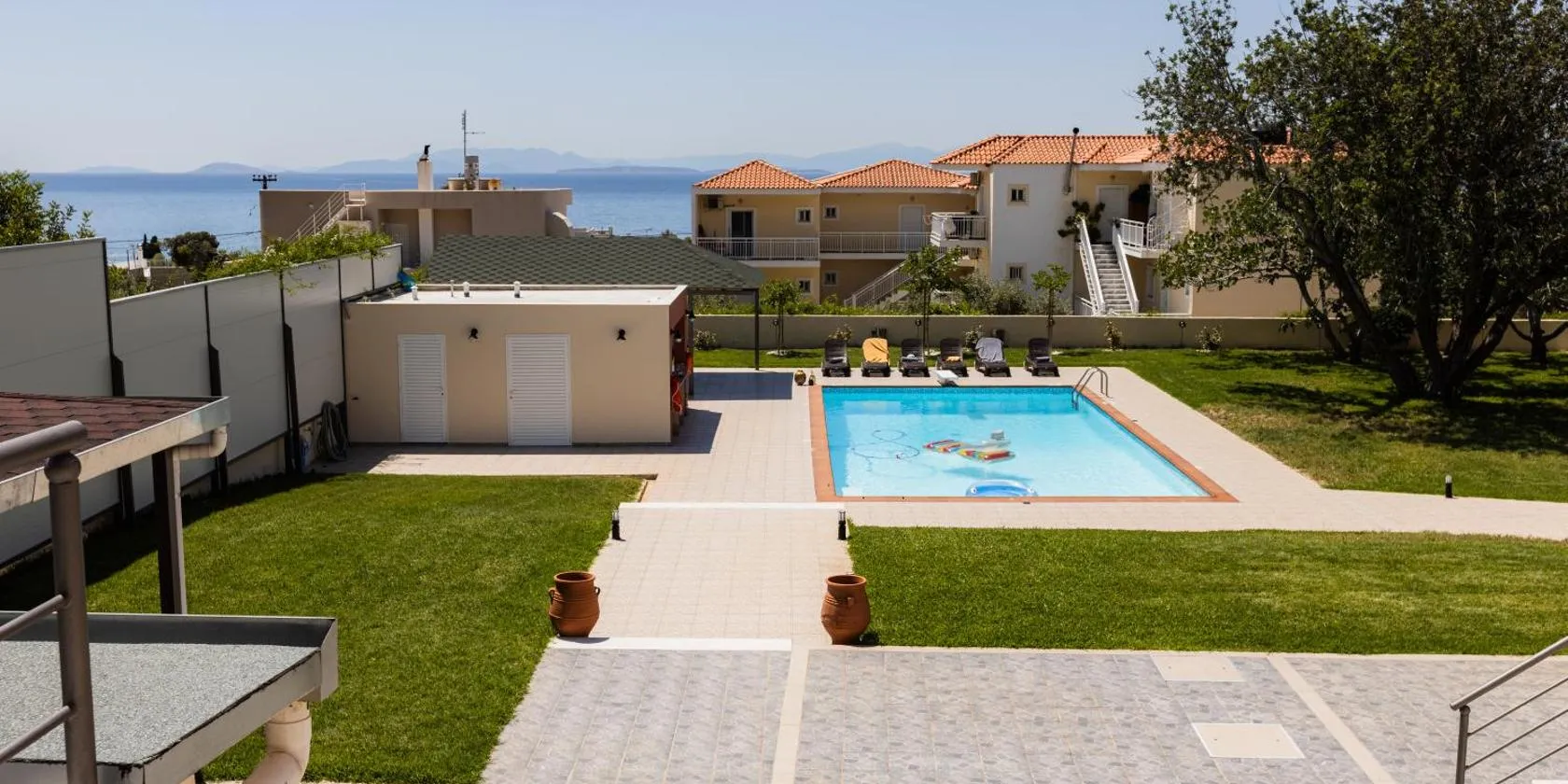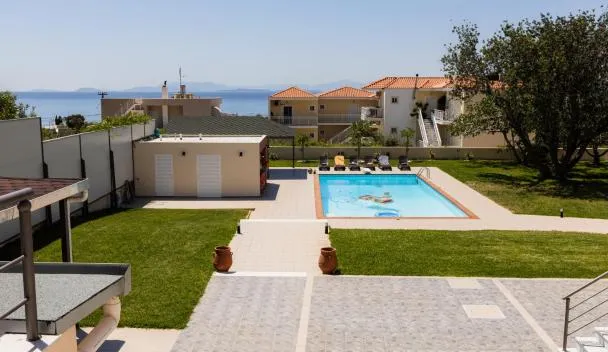 Ανεμπόδιστη Θέα με Κήπο και Πισίνα se nachází u pláže v destinaci Agioi Theodoroi a nabízí sezónní venkovní bazén a bezplatné Wi-Fi. Korintský průplav se nachází jen 14 km odtud.
